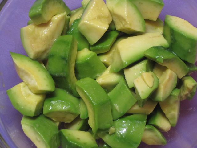 Авокадо вымыть, разрезать пополам, удалить косточки, очистить.