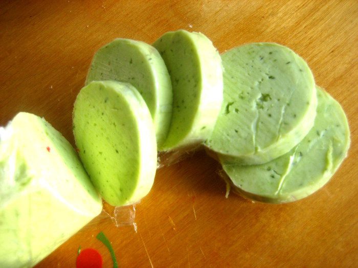 Ради пробы купила кусочек пикантного зелёного масла и осталась довольна его деликатным вкусом! Всё в меру...острота, аромат чеснока,цвет от добавок из зелени и видны даже небольшие вкрапления от перца чили...,совсем чуть-чуть)))