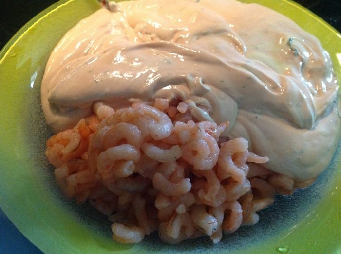 Перемешиваем с креветками и отправляем в холодильник.
