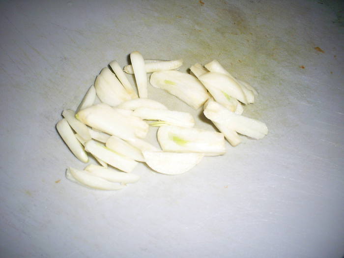 Чеснок нарезать тонкими брусочками