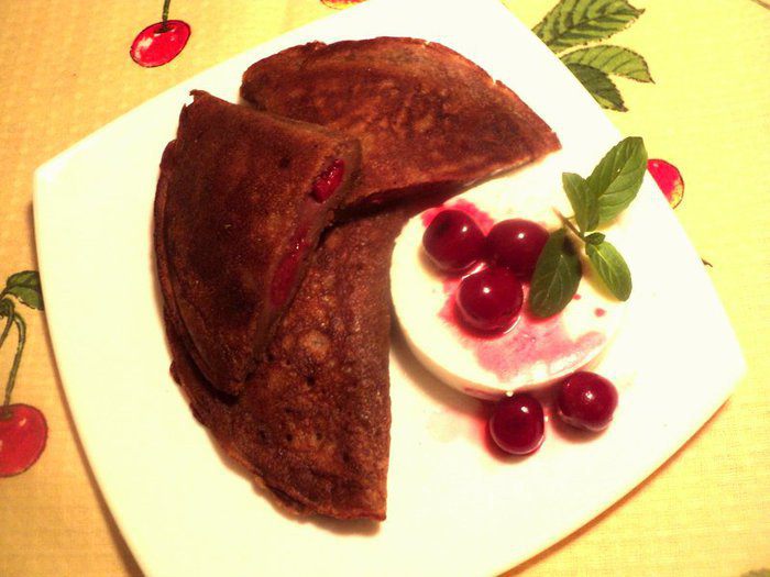 Необычные блинные пирожки. На этот раз на тему «вишня + шоколад», беспроигрышный вариант! Очень вкусно, особенно с мороженным!