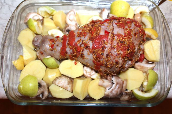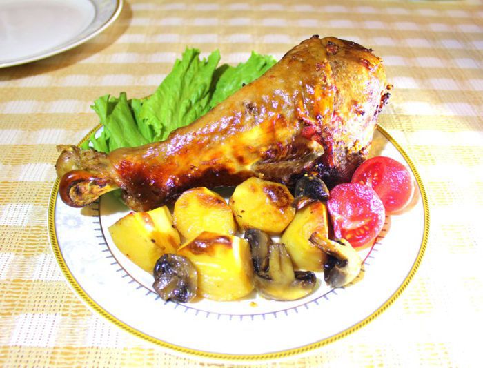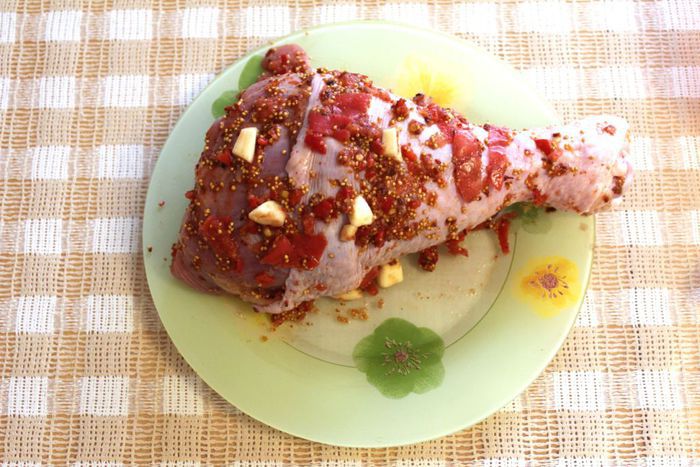 Пока запекается индейка приготовить соус. Ингредиенты для соуса указаны в конце списка. В сковороде растопить сливочное мало, добавить муку и пассеровать несколько минут на среднем огне, помешивая. Затем добавить апельсиновый сок, вино и воду, также цедру, посолить, поперчить, добавить щепотку сахара и уваривать на небольшом огне, помешивая, минут 7-10. Соус должен загустеть и быть сбалансирован по вкусу.