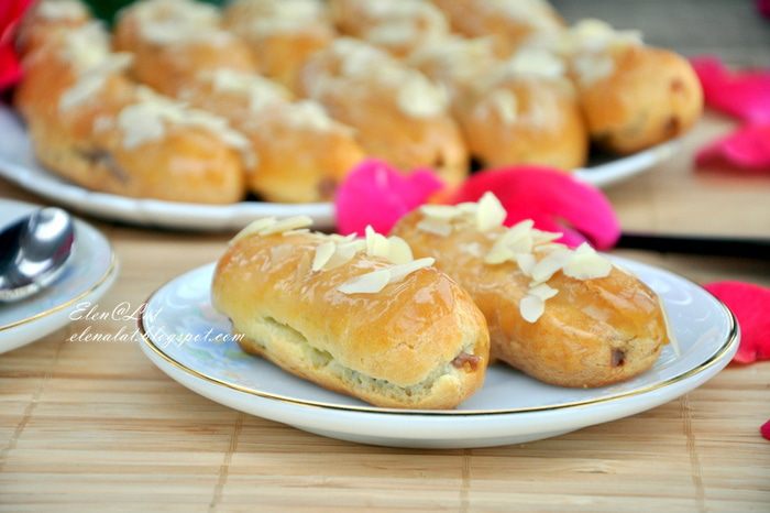 Для этого с помощью кондитерского мешка начинить эклеры шоколадным кремом. И затем на каждый эклер нанести карамельный гляссаж. Я брала эклер за низ и окунала верхней стороной в гляссаж. Сверху пирожные посыпать миндальными лепестками.