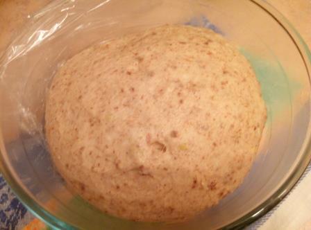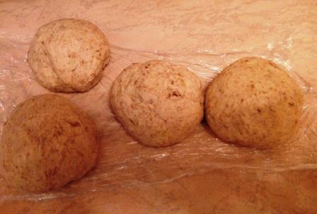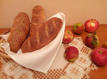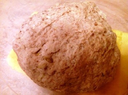 Смешать сухие ингредиенты: дрожжи, отруби и муку. Добавить яблочно-медовую смесь и замесить мягкое, упругое тесто. Вымешивать хорошо, тщательно, у меня ушло 20 минут. Если нужно, добавьте пару столовых ложек воды, но не торопитесь, яблоки при вымешивании отдают свою влагу, и тесто станет эластичным.