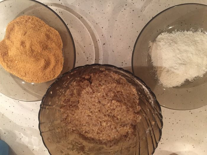 Начинаем формировать котлеты. Я сделала пополам панировку в сухарях и муке.