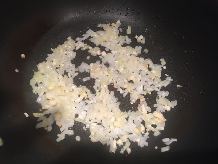 На сковороде жарим лук и чеснок.