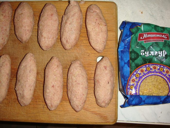 Устанавливаем в мясорубку насадку для кеббе и пропускаем через нее фарш. Отделять фарш пальцами. Если такой нет, можно лепить руками и делать внутри отверстие для начинки пальцем.