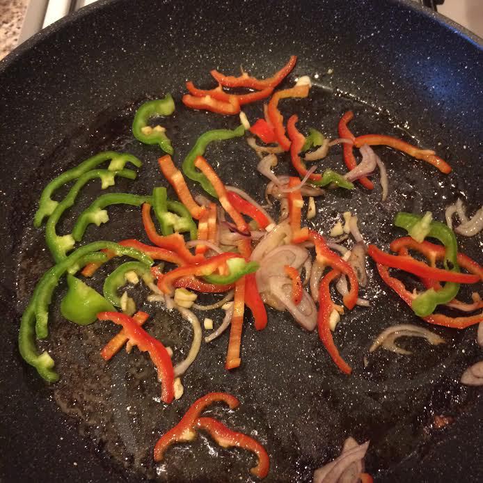 На той же сковороде обжариваем слегка овощи 3 — 4 минуты.