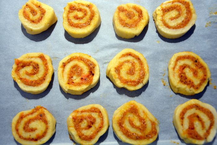 Выложить на противень, застеленный пергаментом или силиконовым ковриком.