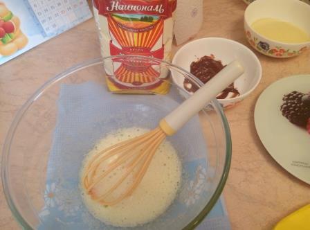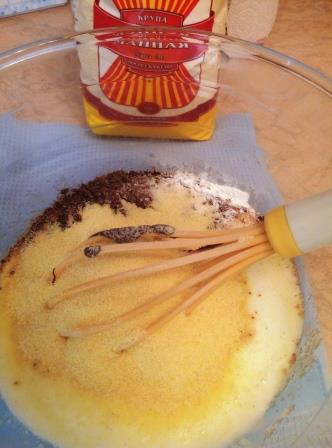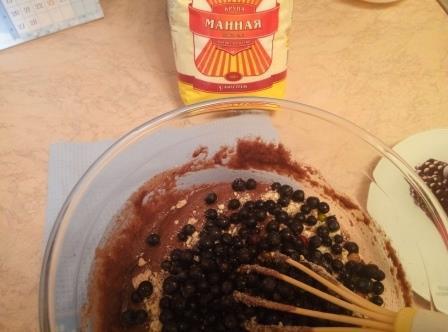 Кедровые орехи немного измельчаем блендером (не в кашу и не в масло), а буквально на 2 — 3 части, некоторые можно и целиком оставить, если есть время и желание — рубим ножом. Обжаривать не нужно. Добавляем в наше тесто орехи и замороженную чернику, перемешиваем.