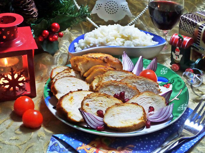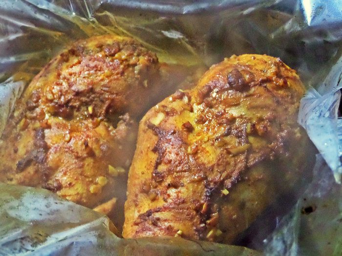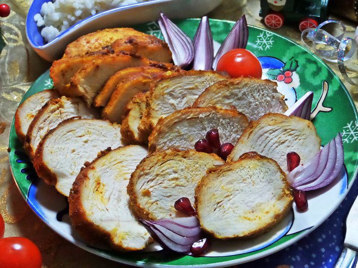 Куриные грудки, запеченные в рукаве, и вариант подачи