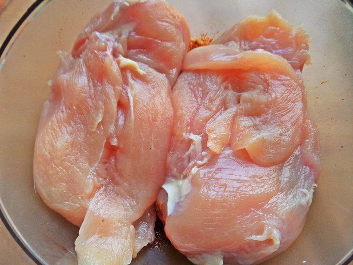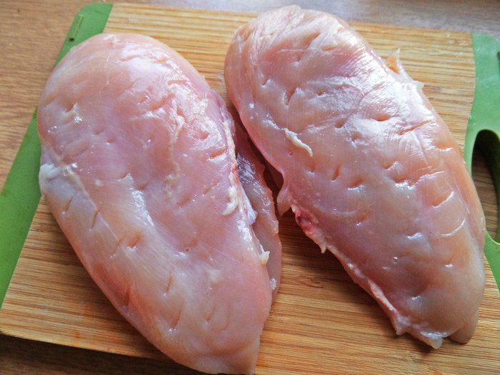 Грудки (весом 725 г) наколоть кончиком ножа.