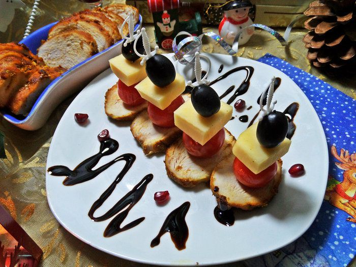 Праздников впереди много, предлагаю такую закуску. Можно остановиться на этапе запеченных грудок, а можно взять в руки шпажки и пофантазировать с подачей!