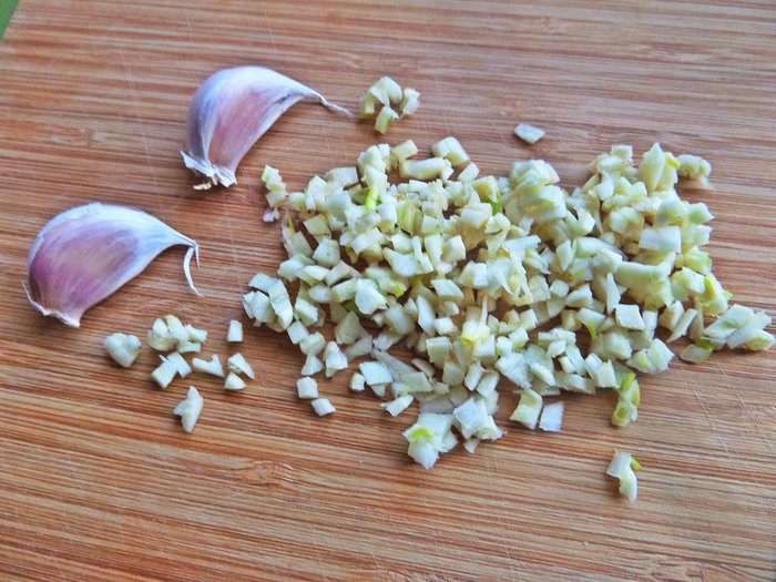 Порубим мелко чеснок.