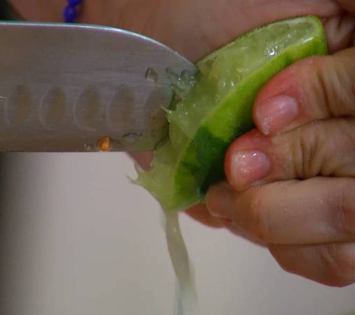 Из половинки лайма выжать сок.