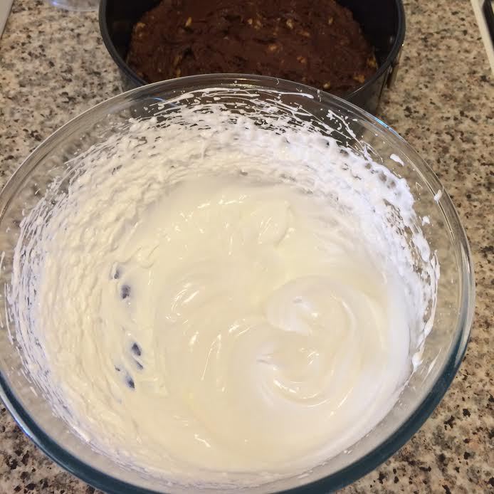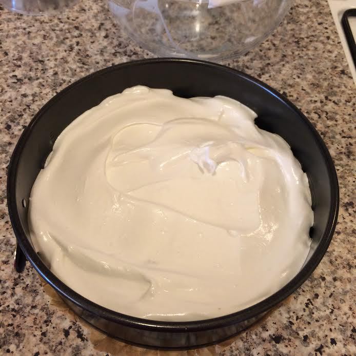 На тесто выложить взбитые белки, разровнять.