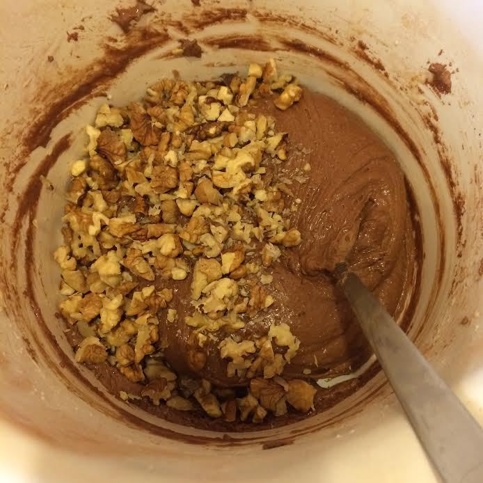 Орехи крупно порезать, добавить в тесто, перемешать.