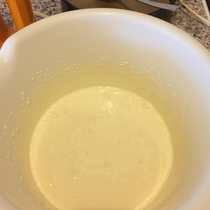 Духовку нагреть до 180°С. В миске хорошо взбить (5 — 10 минут) 2 желтка+яйцо+сахар.