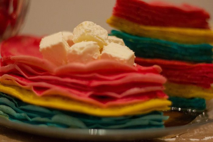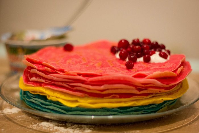 Масленичная неделя подходит к концу. Если обычные блины можно испечь и в будни, то по особому случаю мы рискнули приготовить необычные, цветные.