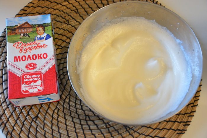 Добавить взбитые белки к молочной массе, хорошо перемешать миксером или венчиком. Масса должна литься.