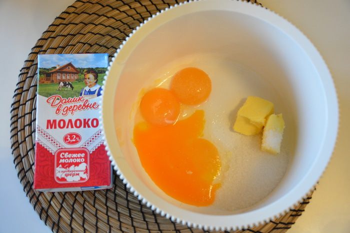 Отделить желтки от белков. К желткам добавить мягкое сливочное масло «Домик в деревне», сахар.