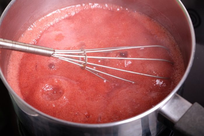 В сотейнике соединяете сливки и молоко. Если хотите сделать панна котту с ванильным ароматом, на этом этапе добавляете натуральную ваниль (стручок разрезать, вынуть все семена, семена со стручком помещаете в молочную смесь). И главное — никакими ванилинами и прочими химическими эссенциями не заменять натуральный стручок. Лучше вообще ничего не добавлять (как в моем случае).
