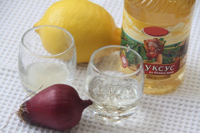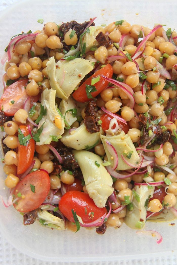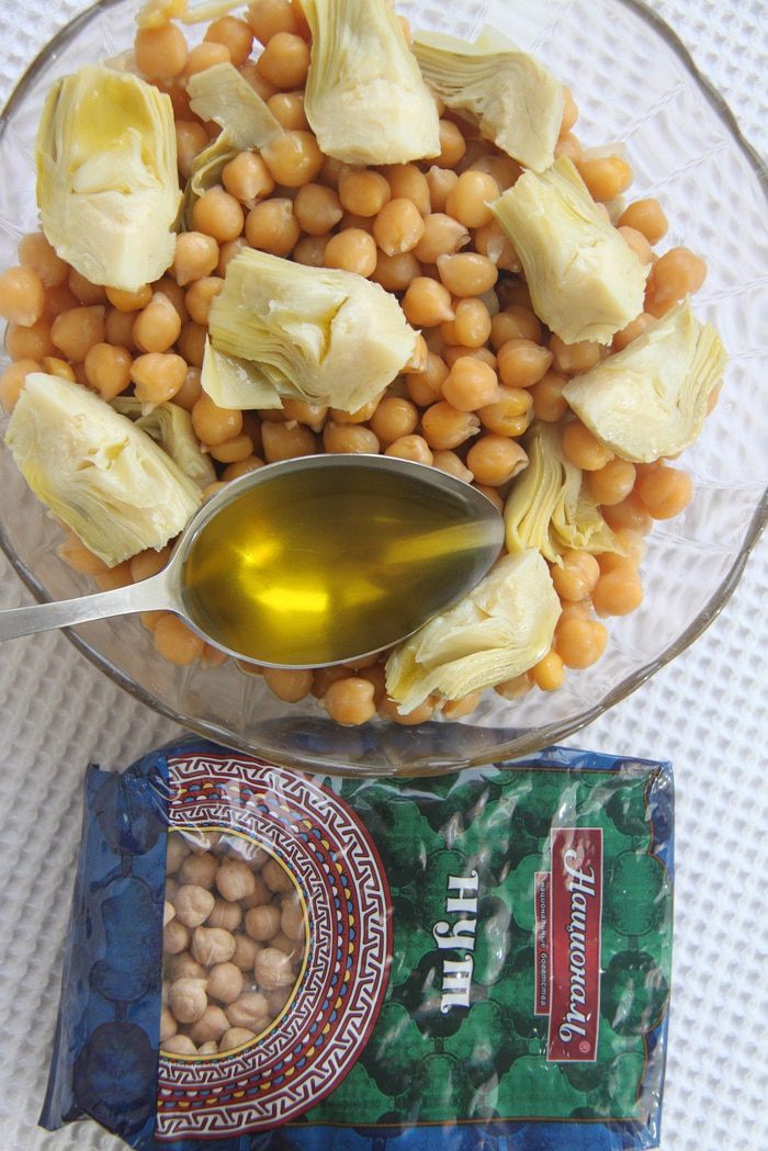 Для заправки соединить 1 ст. л. оливкового масла с 2 ст. л. маринада от лука и 1 ч. л. зерненой горчицы. Перемешать, посолить и поперчить по вкусу. Добавить заправку к салату. Сверху на салат настругать крупными хлопьями твердый сыр. Очень вкусно!