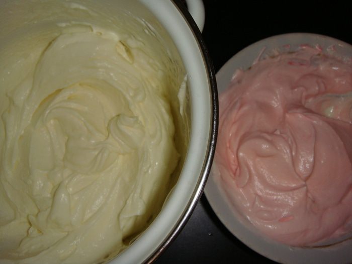 Я отложила часть крема и добавила 3 капли красного красителя.