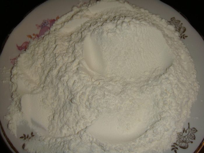 В тарелке смешать муку, разрыхлитель и соль.