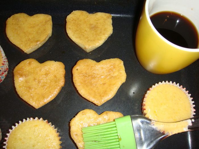 Для сиропа смешать горячий крепкий кофе с коньяком и сахаром. Пропитать им кексы 4 раза.