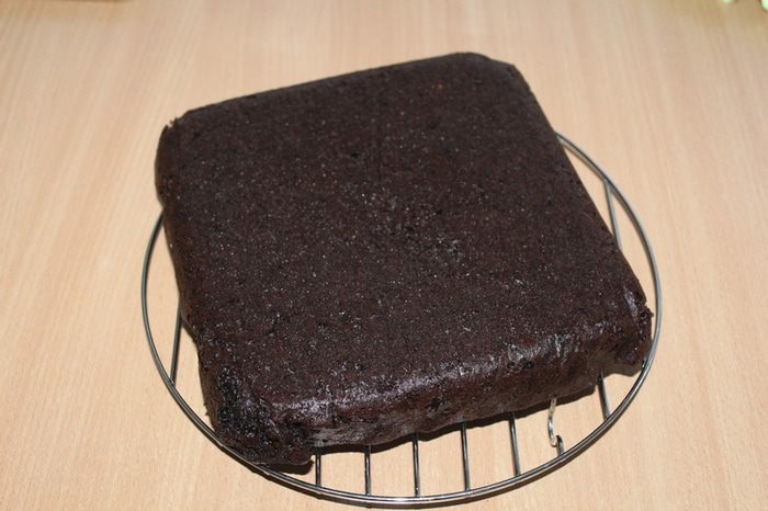 Выпекаем в разогретой до 180°С духовке минут 20 — 25 (корж не стоит пересушивать). Готовый корж необходимо полностью остудить на решетке.