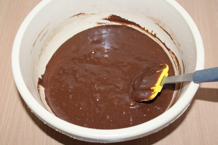 Смешиваем жидкие ингредиенты и сухие. Перемешиваем лопаткой до однородного состояния.