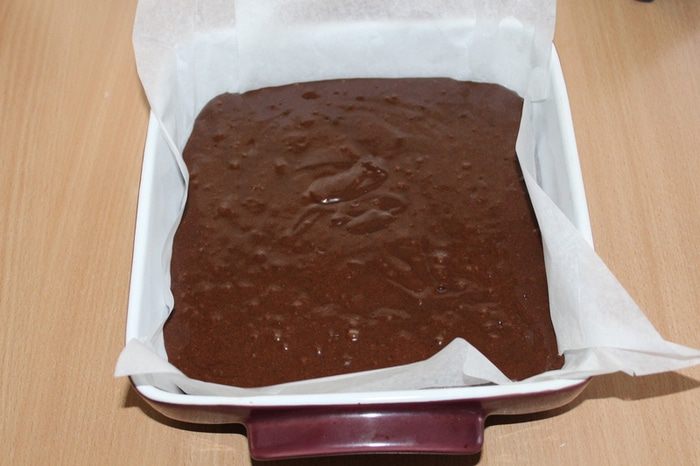 Выливаем в форму размером примерно 18х18 см с пергаментом.