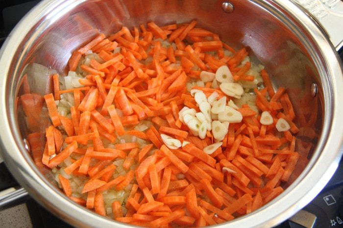 Подготовить остальные ингредиенты: луковицу, чеснок и морковь очистить.