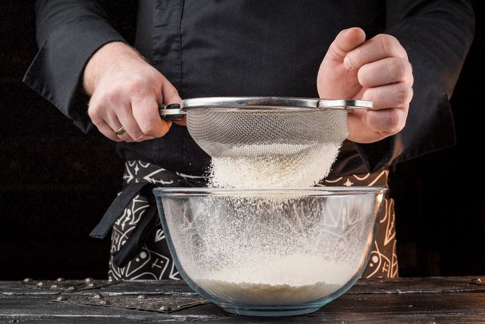 Муку дважды просеять.