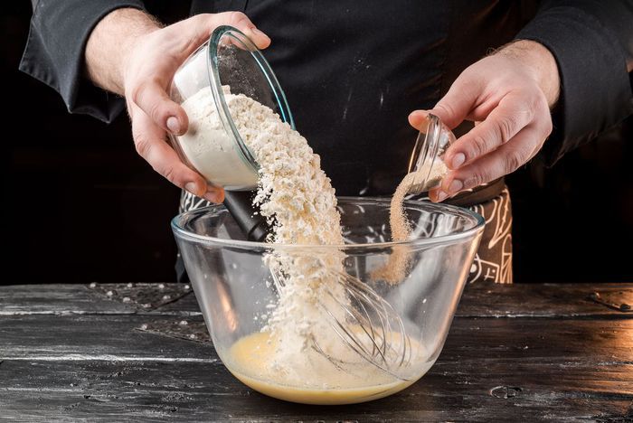 Муку и дрожжи высыпать в получившуюся массу.