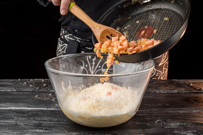 Добавить натертый на мелкой терке сыр.