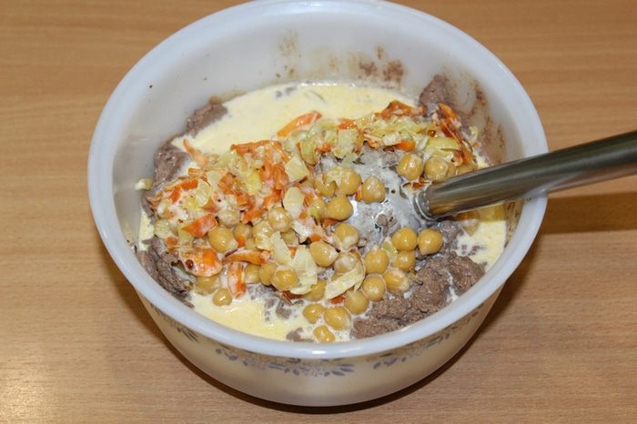 В конце добавить заранее отваренный нут ТМ «Националь» и готовить, помешивая, еще немного.