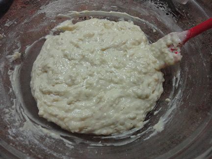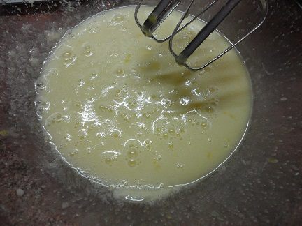 Просеять к жидкой смеси и перемешать. Выложить в форму. Силиконовую форму смазывать не надо, а металлическую лучше выстлать пекарской бумагой. Поверх теста выложить варенье и сделать разводы деревянной шпажкой. (Забыла сфотографировать этот шаг).