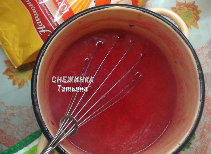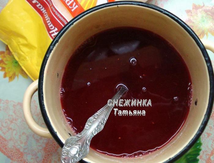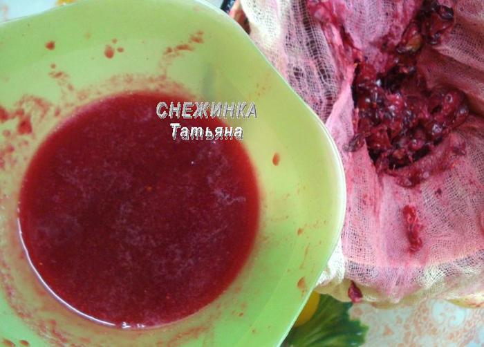 Выжимаем полученный сок. Лучше всего через марлю, сложенную вдвое, чтобы избежать попадания мелких косточек. Жмых не выбрасываем. Возвращаем его в кастрюлю, заливаем необходимым количеством воды, ставим на огонь, доводим до кипения, кипятим пару минут. Затем снова процеживаем жмых. Полученный отвар используем далее.