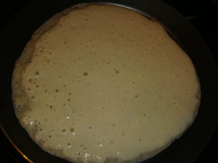 Сковороду нагреть и смазать. Жарить блины с двух сторон до золотистого цвета.