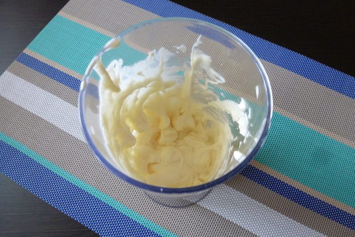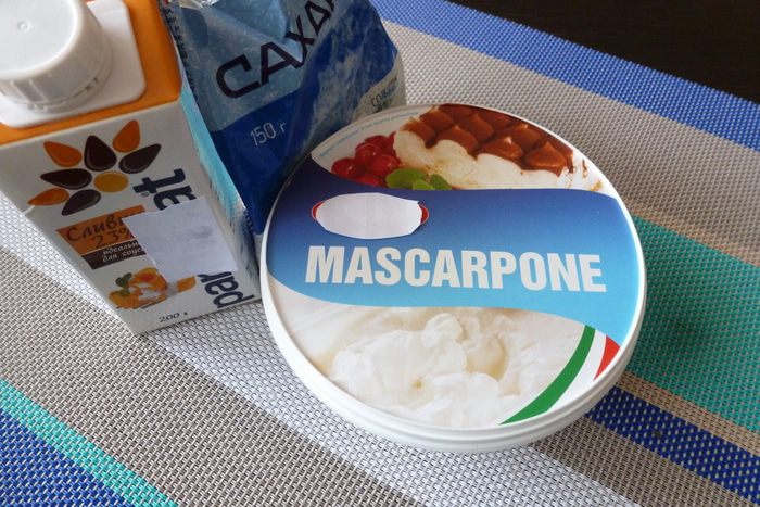 Готовим крем из маскарпоне, сливок и сахарной пудры.