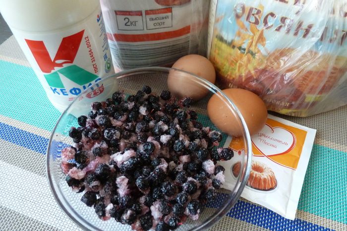 Подготовим продукты для блинчиков. Черника у меня замороженная (наша, северная). Блинчики я старалась приготовить максимально полезными, поэтому я взяла два вида муки — пшеничную и овсяную.