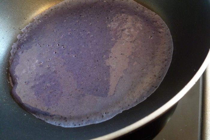 Представляю вам черничные блинчики. Жаль, что при жарке они несколько теряют свой жизнерадостный цвет. Но все равно, они получаются яркими и очень интересными! Черника — ягода вкусная, достаточно сладкая, с легкой кислинкой. Поэтому и на вкус блинчики получились супер! Приготовить вкусный крем для них — дело пяти минут. И в результате — праздничное блюдо!