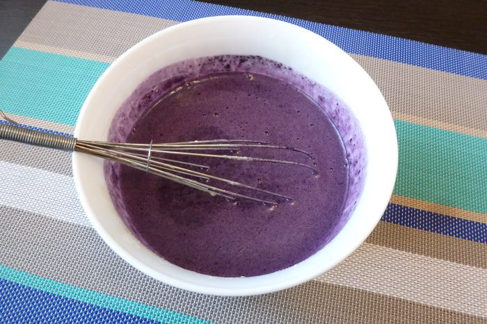 Вмешаем черничное пюре и пару ложек растительного масла, тщательно размешаем. Оставим на 15 минут.
