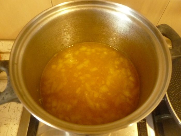 В кастрюлю вылить бульон, добавить паприку, нут, варить 10 минут. Попробовать суп, при необходимости приправить солью и перцем.