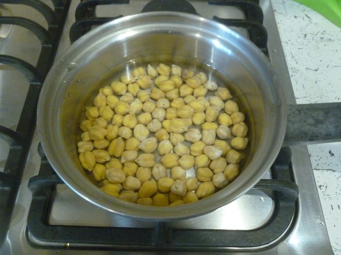 Нут ТМ «Националь» предварительно замочить на ночь, промыть, выложить в кастрюлю, залить водой и варить 1 час. Откинуть на сито и дать воде стечь.