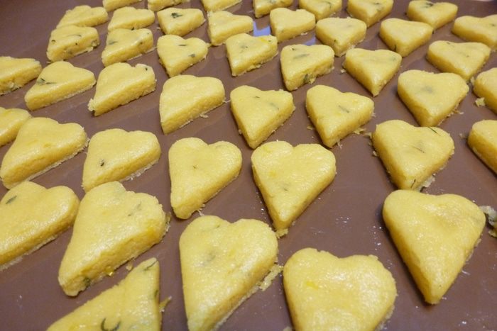 По истечении времени раскатаем тесто в пласт толщиной 0,5 см. Вырежем формой сердечки. Выпекаем при 180°С минут 15 — 20.