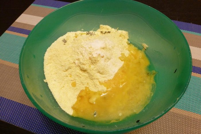 Смешаем в миске сыпучие ингредиенты, цедру и тимьян. Немного разотрем пальцами, чтобы цедра раскрыла аромат и вкус.