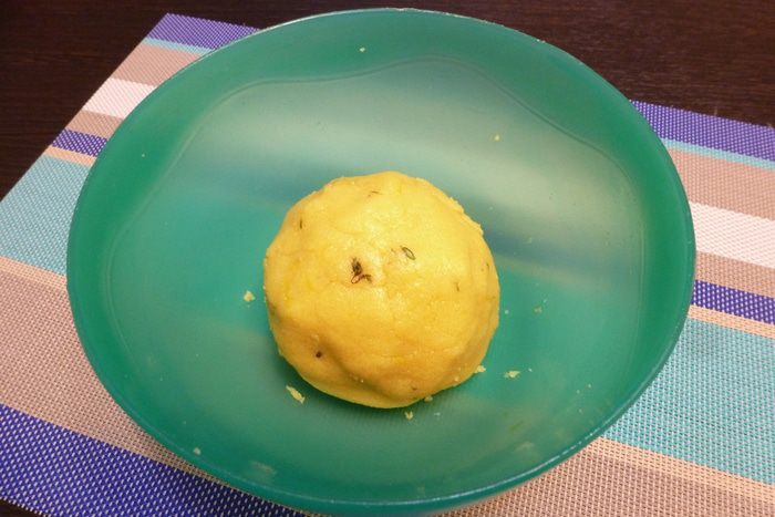 Получившееся тесто соберем в шар, завернем в пленку и отправим в холодильник на 40 — 60 минут.